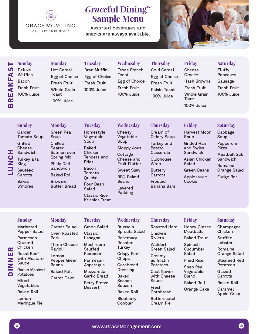 Add flavor every day and enjoy seasonal menus featuring fresh ingredients. Enjoy homestyle meals prepared daily in the community with a wide variety of flavors and styles catered to the changing tastes of the residents who call us home.
