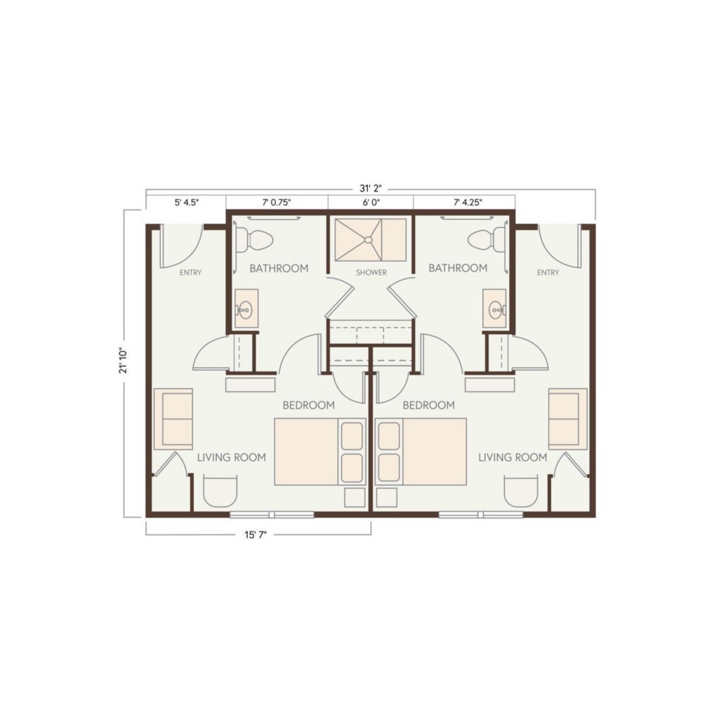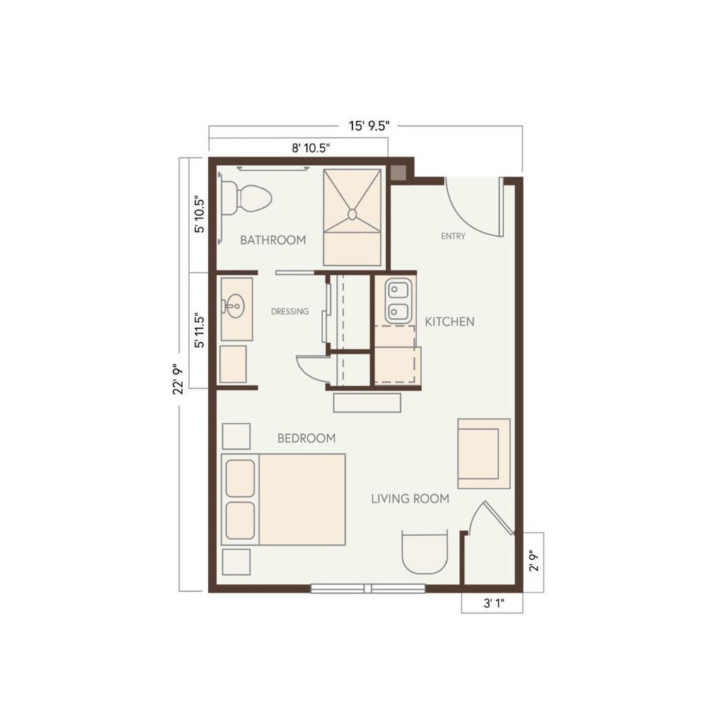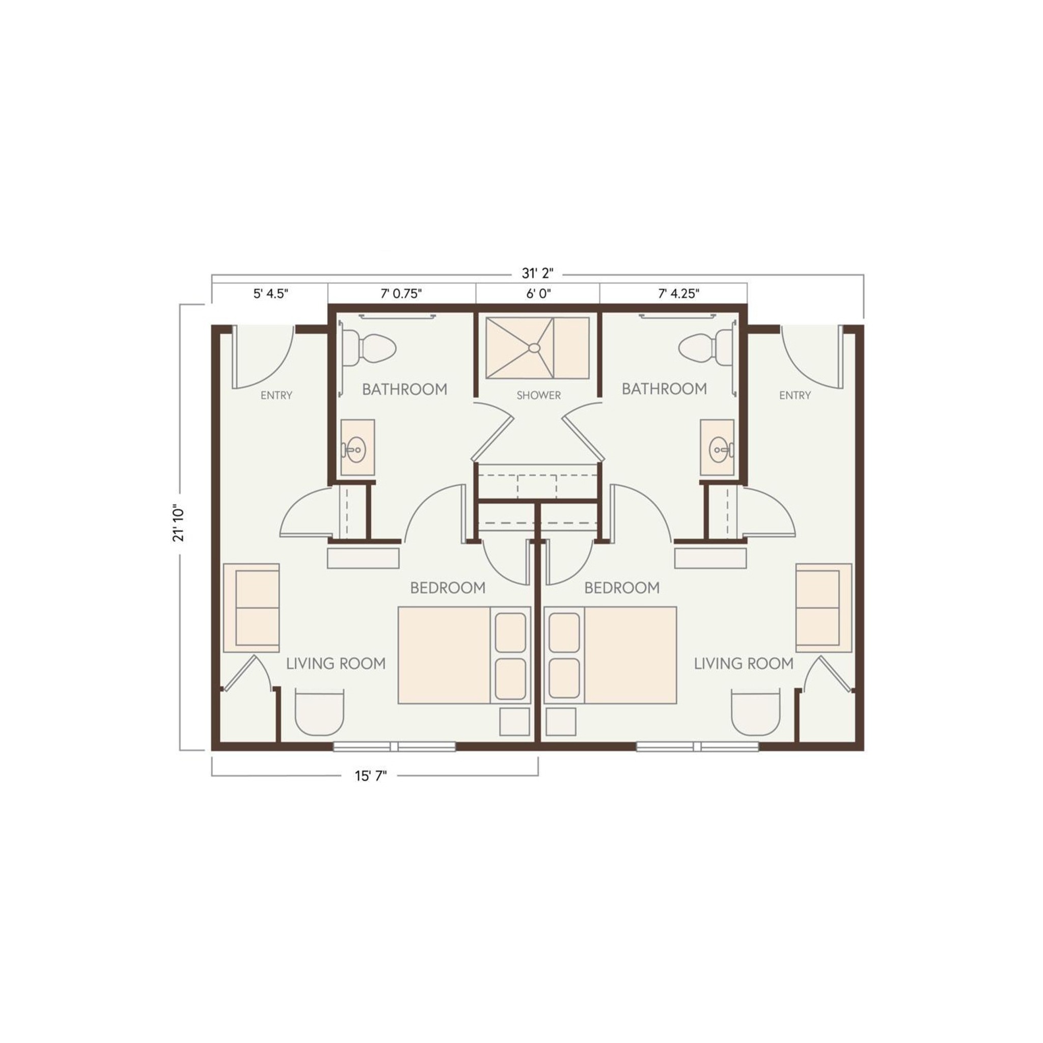 Choice of private studio or shared suite apartment styles including bathrooms with safety features